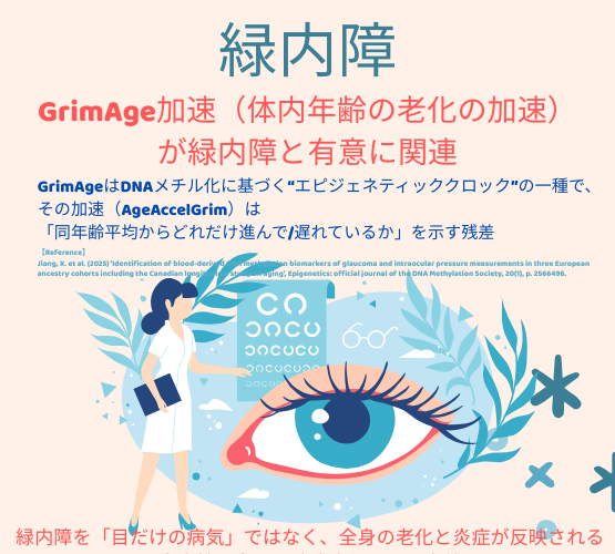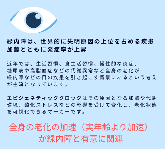 「緑内障が体内年齢の老化の加速と優位に関係」