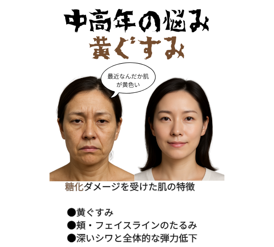 中高年の悩み「黄ぐすみ」その原因と対策