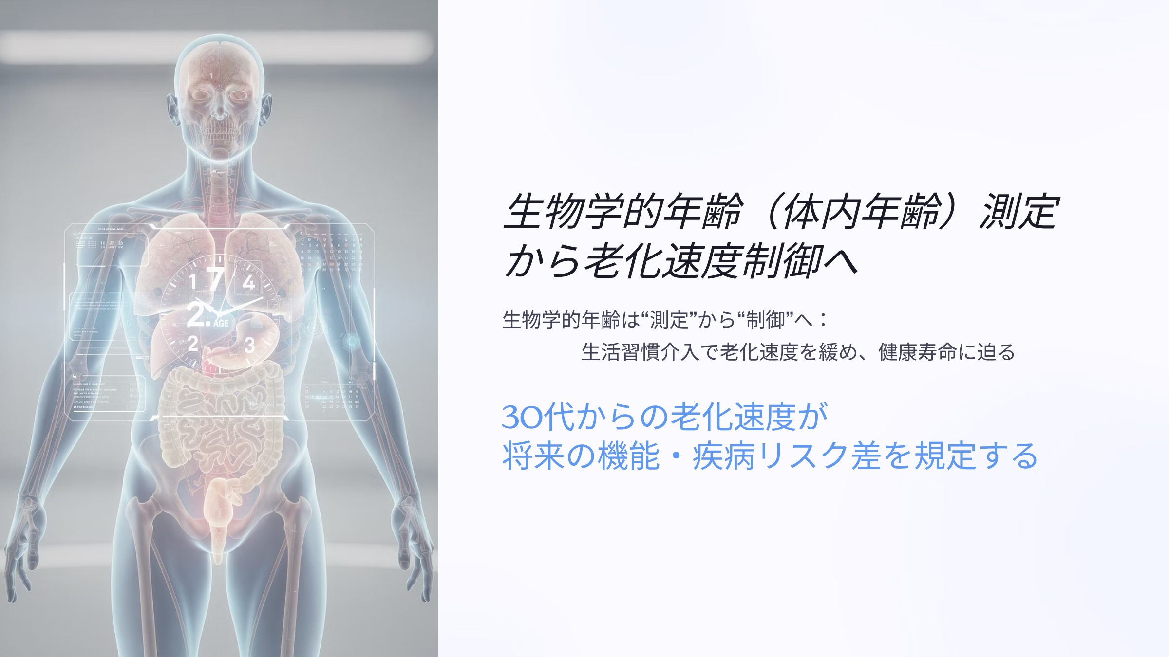 30代の老化速度が将来の機能・疾患リスク差を規定する