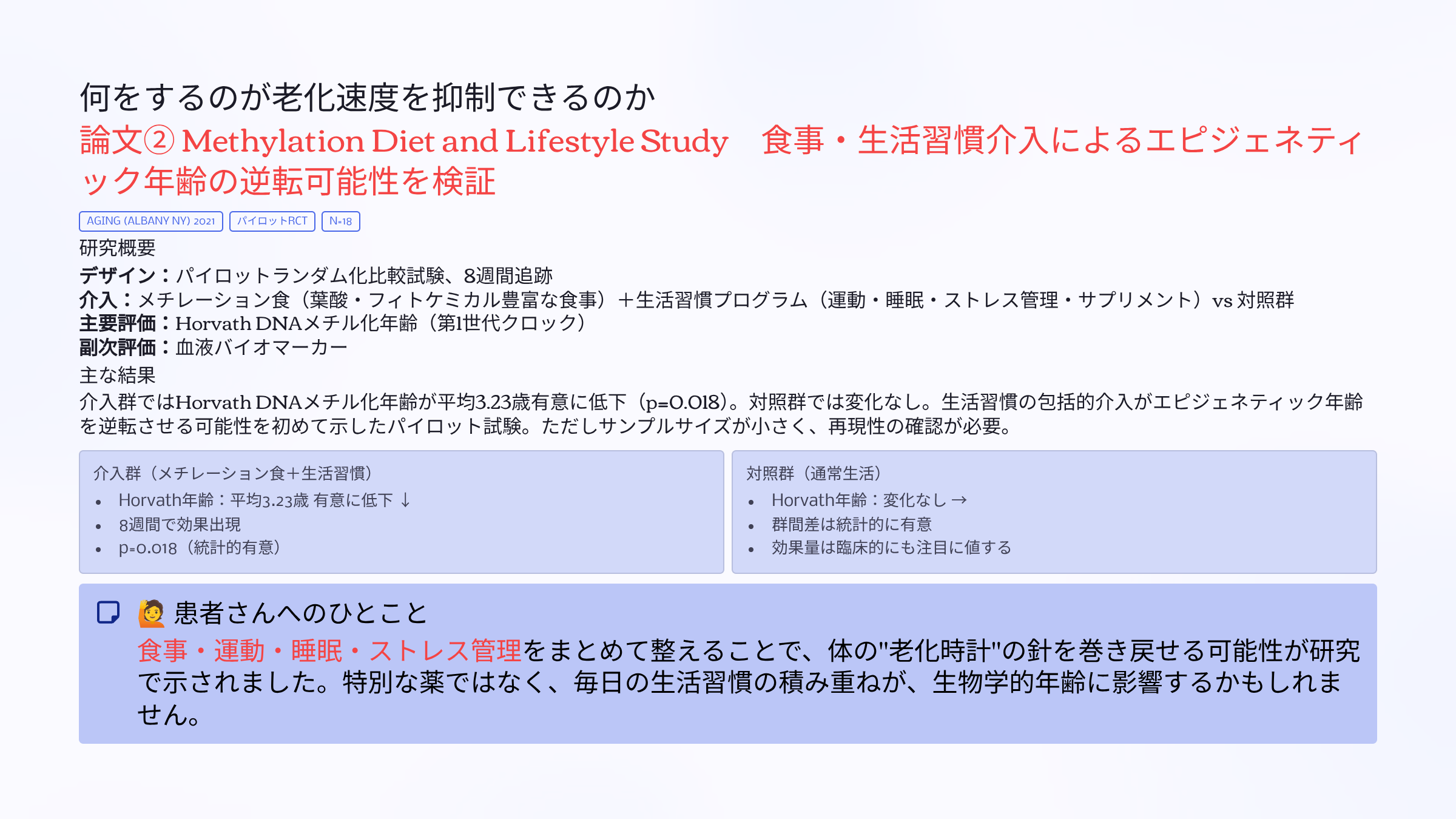 *この情報はエピジェネティックメディスン研究会 第18回講演会 順天堂大学 創造長寿医学講座 八谷剛史先生のご講演より作成しました
