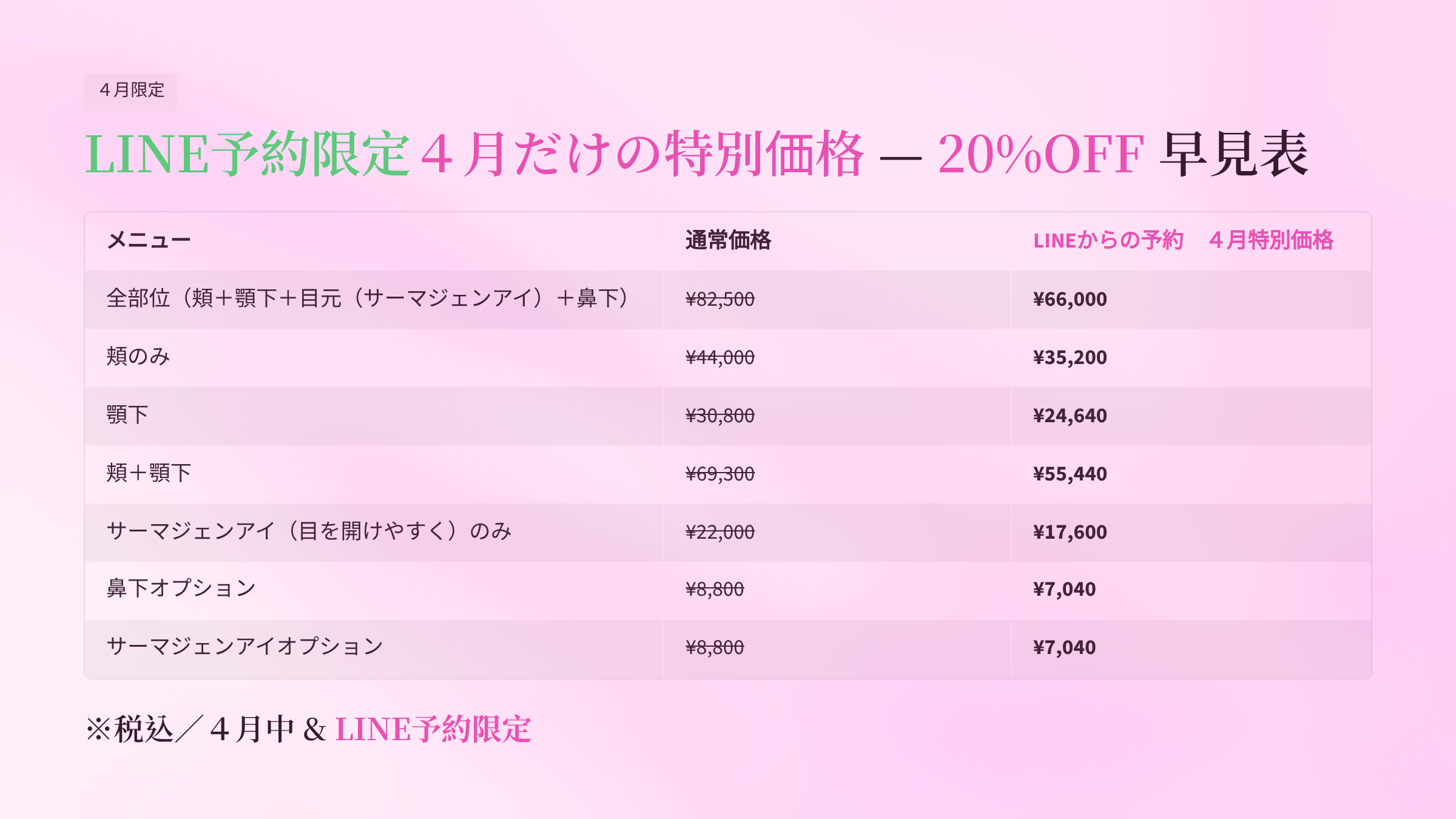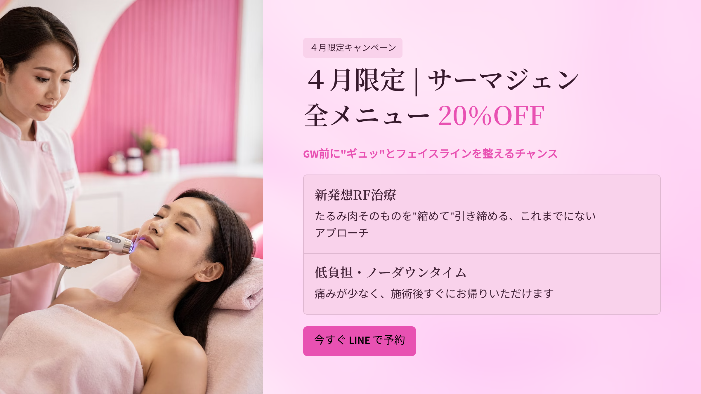 lINEからのご予約限定「4月サーマジェン20%off」!